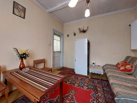 - trzy pokoje, kuchnię z tradycyjną płytą kaflową, łazienkę, sień i komórkę