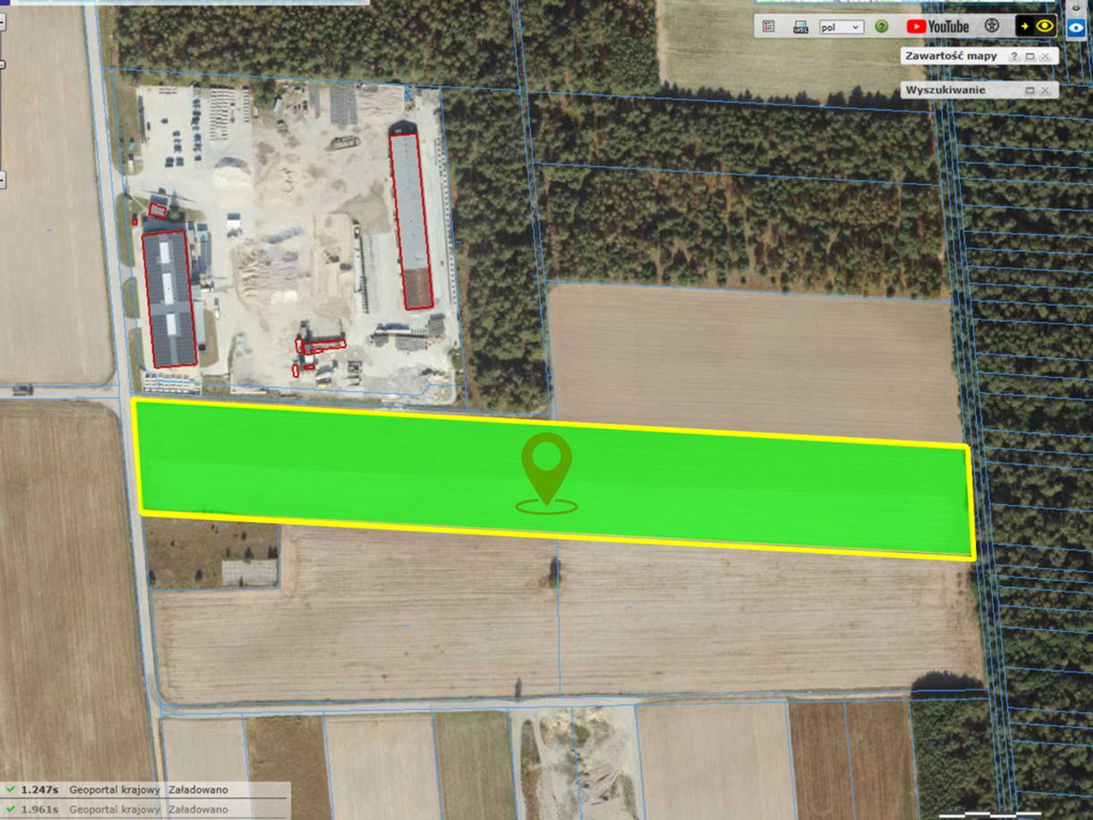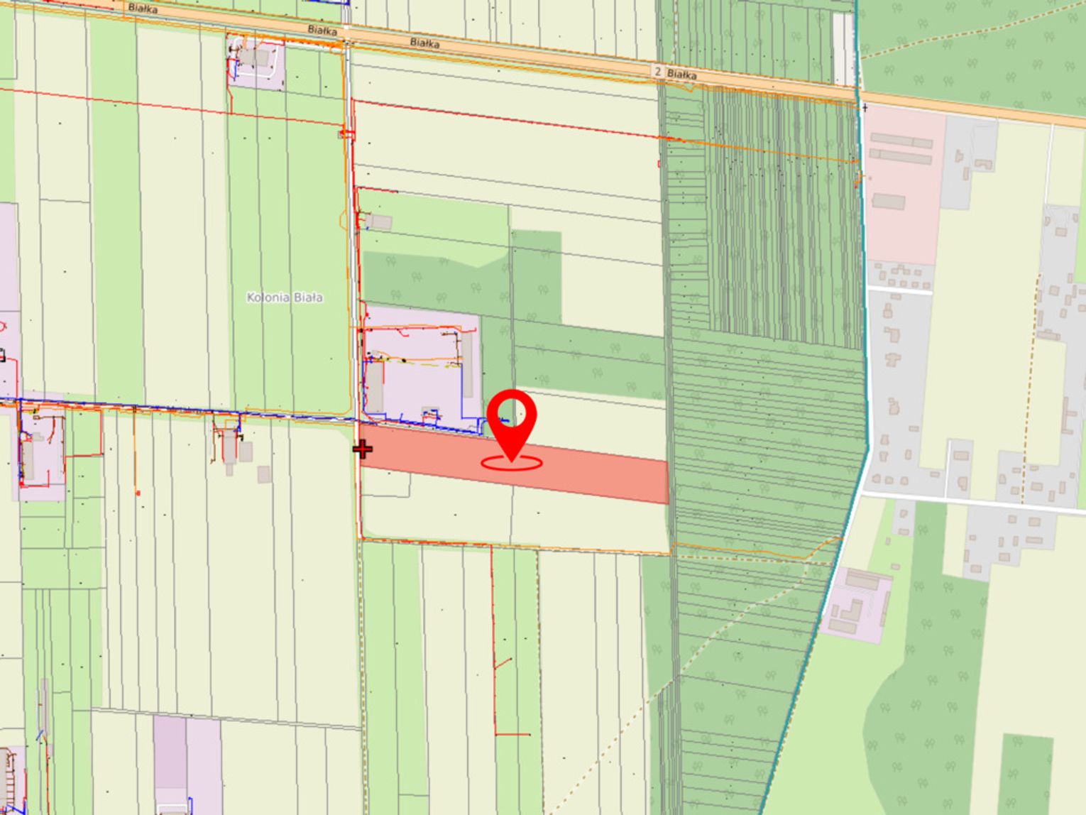 W pobliżu zakłady produkcyjne, usługowe, stacja benzynowa