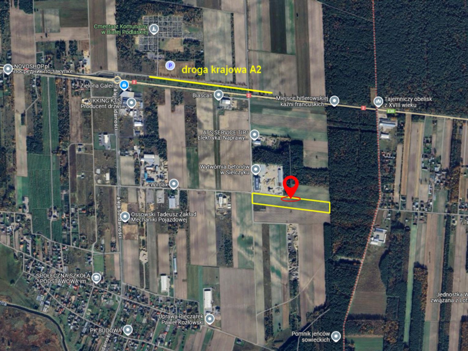 Do trasy E-30 (droga krajowa nr 2) - 650 m