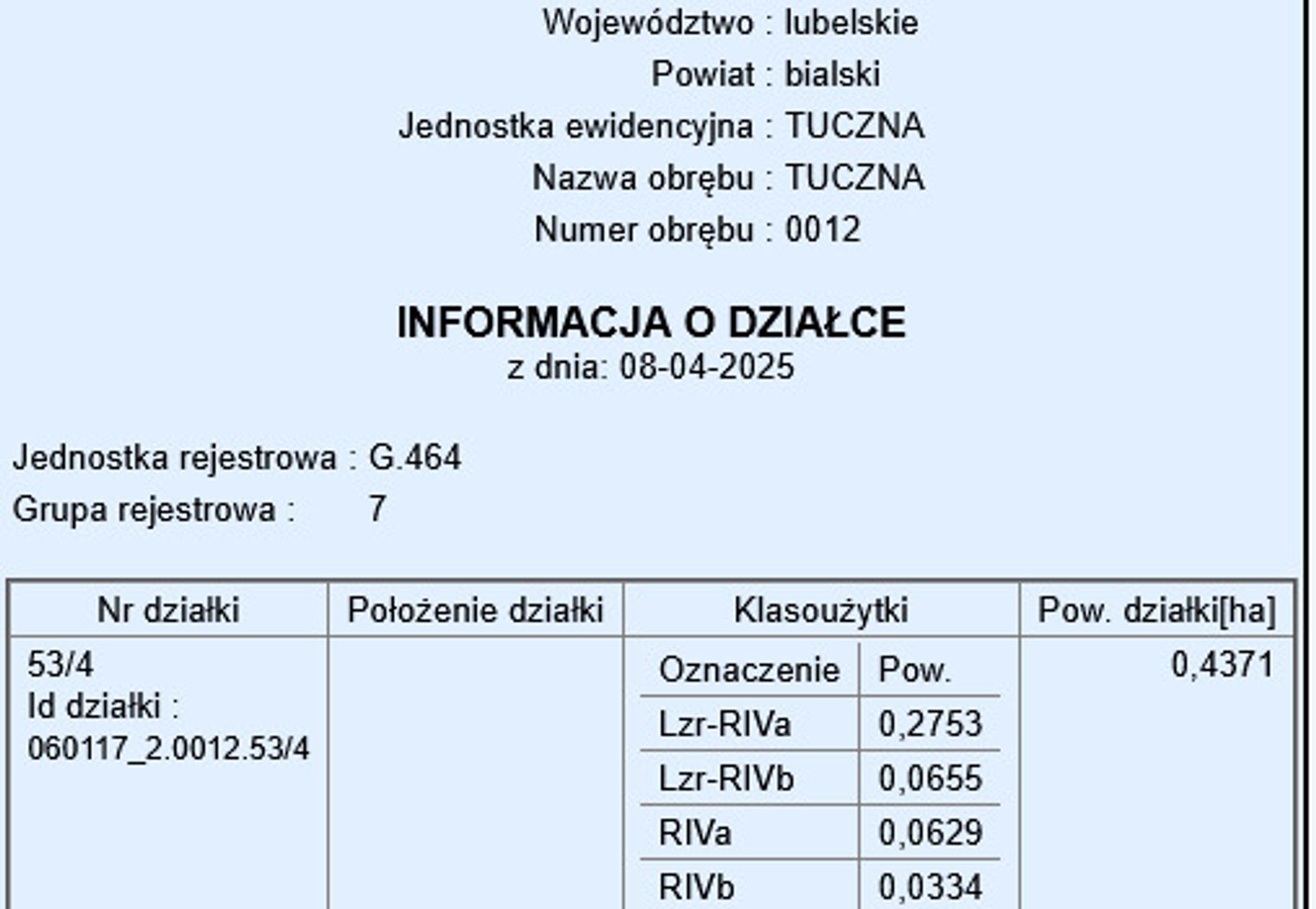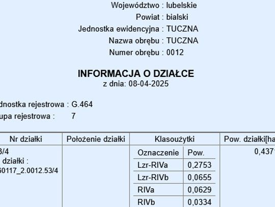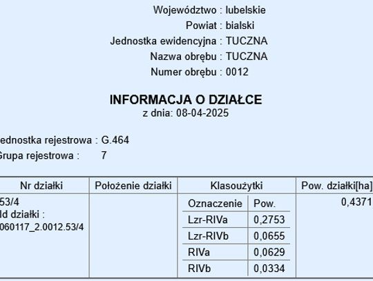 Działka nr 53/4 – powierzchnia: 4371 m²