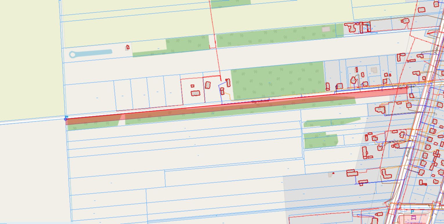 Działka rozciąga się na pasie ponad 800m wzdłuż ulicy Ogrodowej.