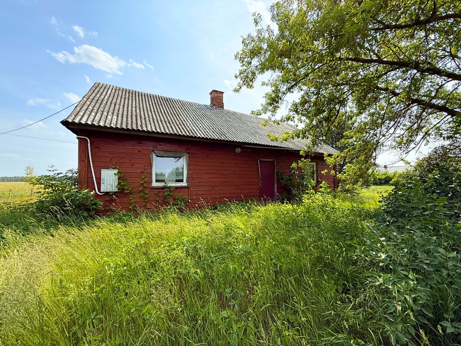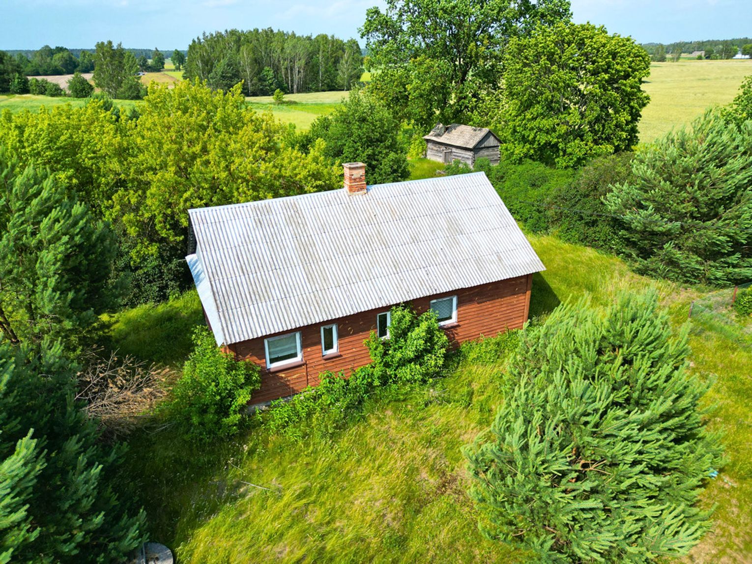 Nieruchomość tworzy działka o powierzchni ok 3868 m² z domem oraz budynkiem gospodarczym.