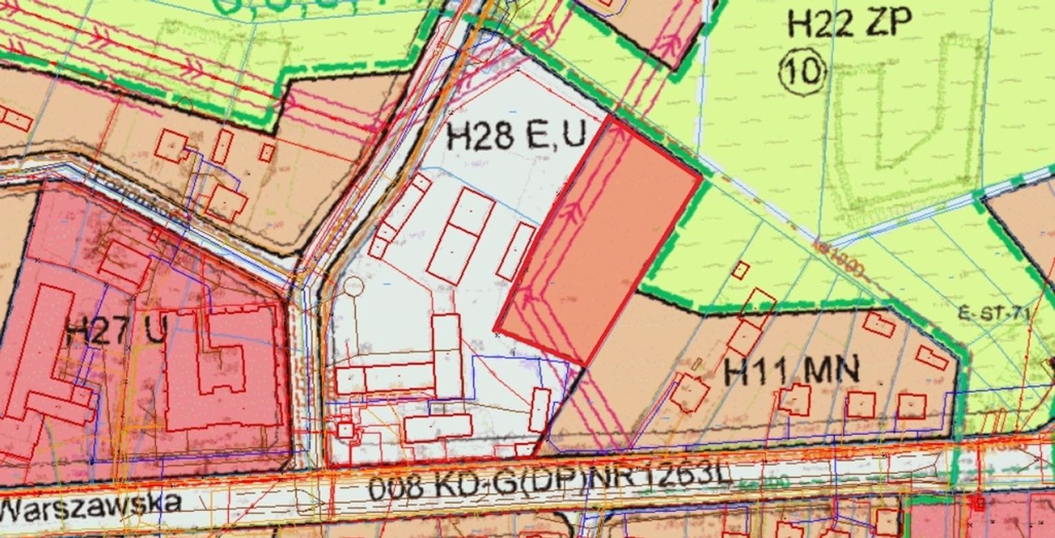 W sąsiedztwie istniejąca zabudowa jednorodzinna oraz nowe domy, posterunek policji, Zakład PGE.