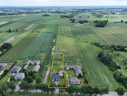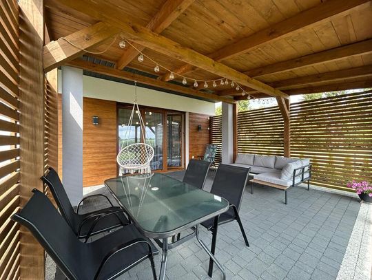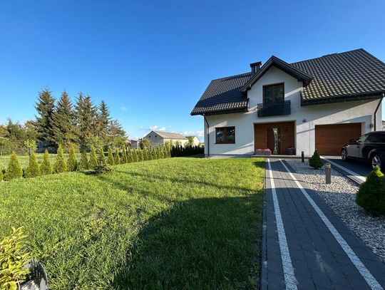 Na sprzedaż nowoczesny, wolnostojący dom o powierzchni użytkowej 136,08m² (całkowita: 197,11m²), położony na dużej, zagospodarowanej działce 2926 m².