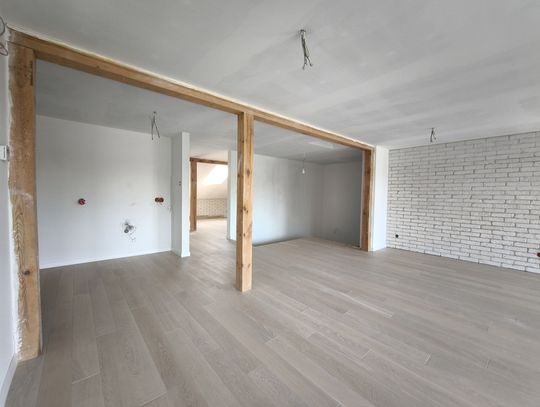 Dodatkowa przestrzeń, w której znajdują się dwa pomieszczenia z położonymi panelami oraz łazienka z WC.