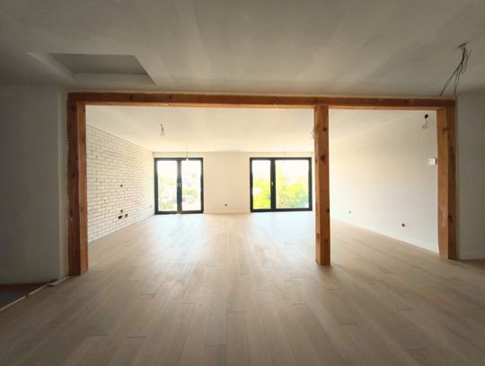 Mieści trzy niezależne pokoje – idealne na sypialnie lub biuro – oraz łazienkę (do wykończenia).