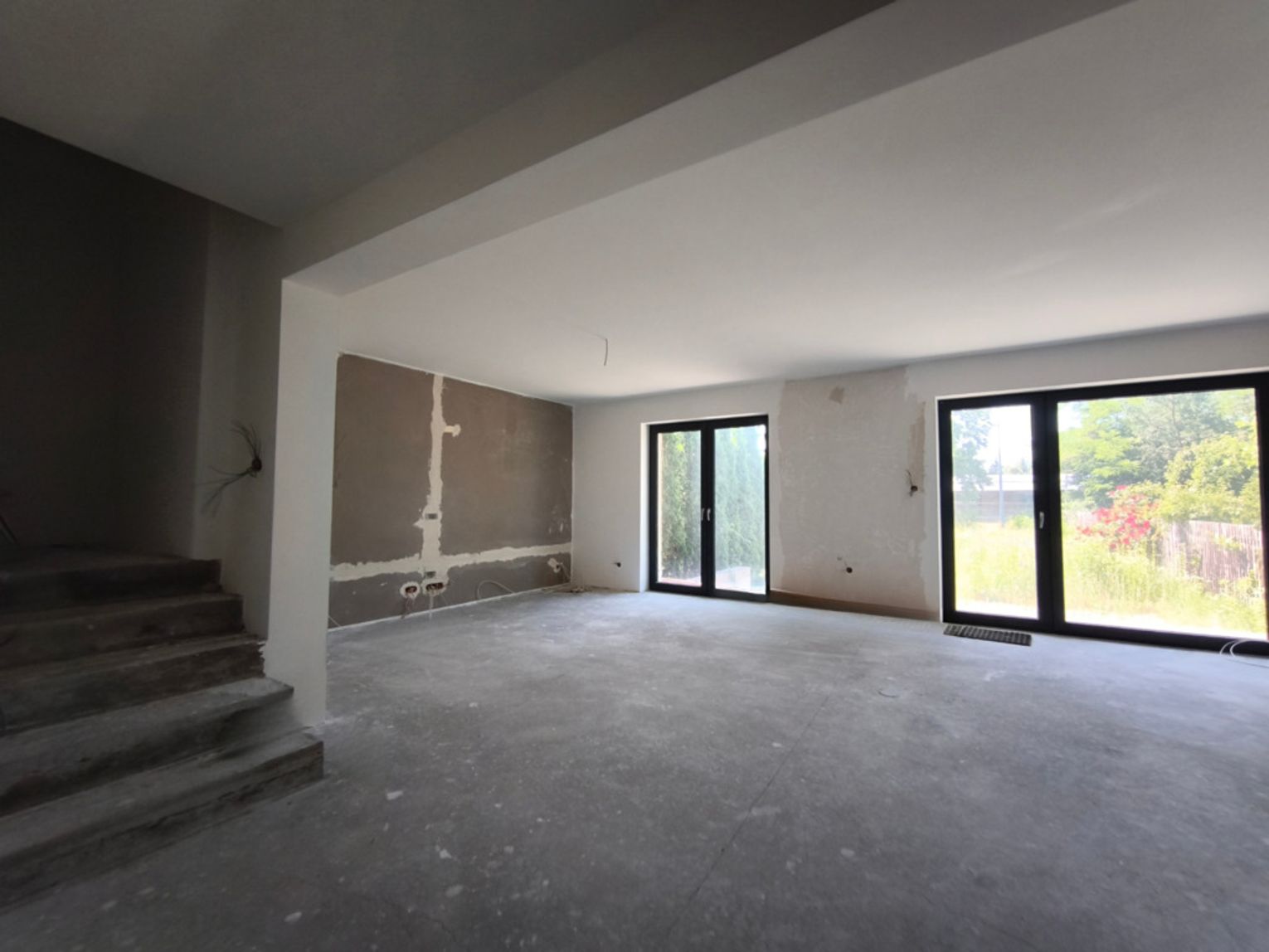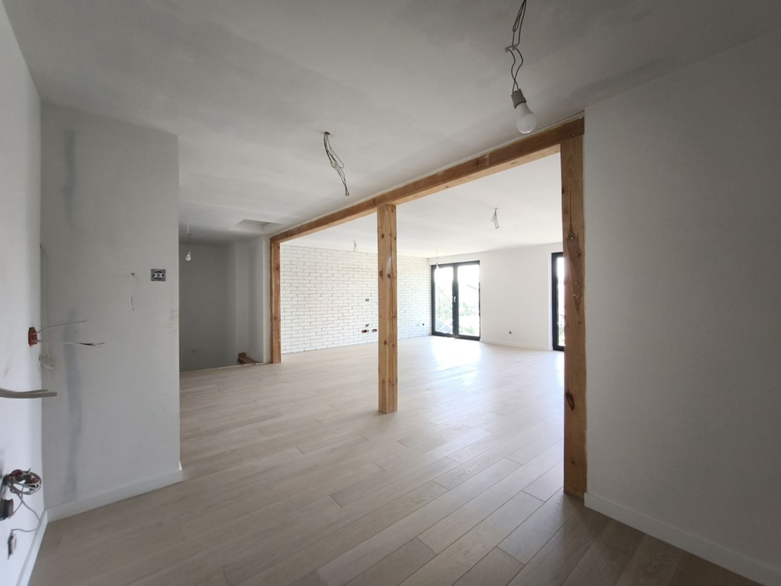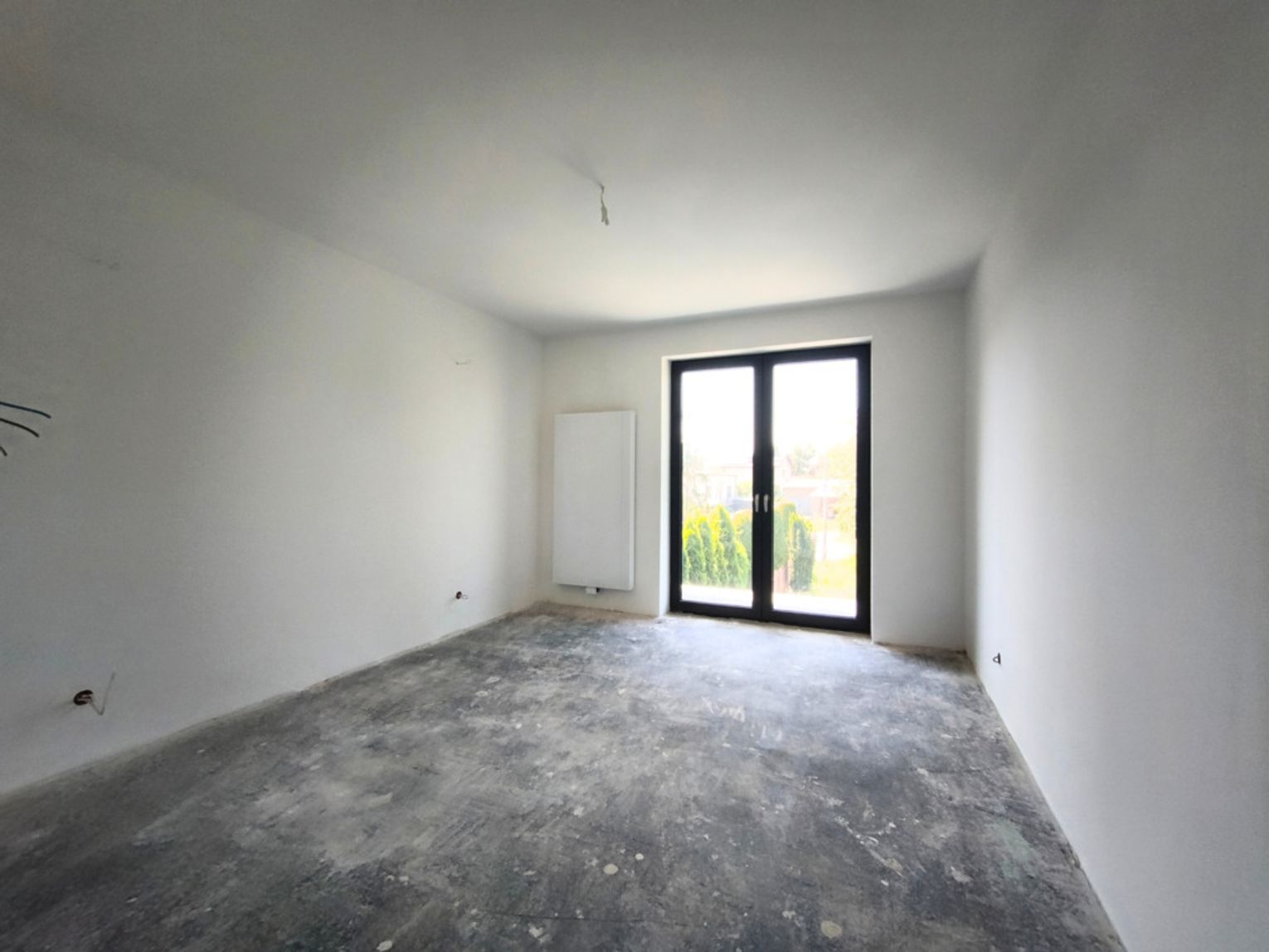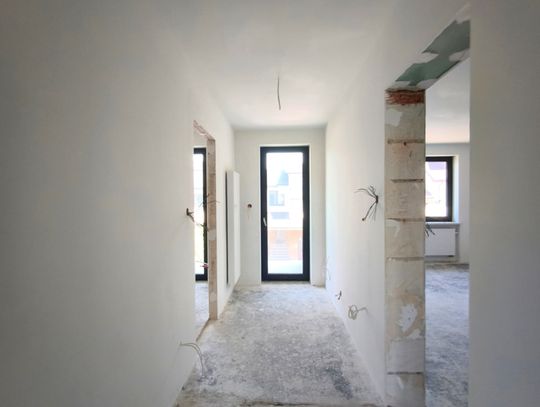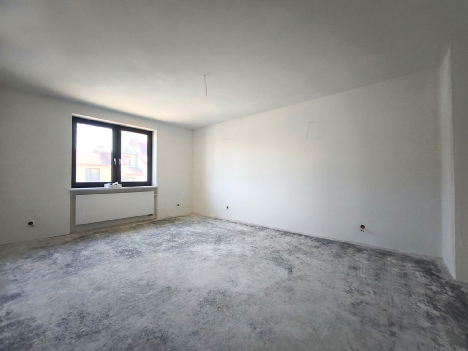 Zostały tu już wykonane wylewki na ogrzewaniu podłogowym, ściany pokryto gładzią.