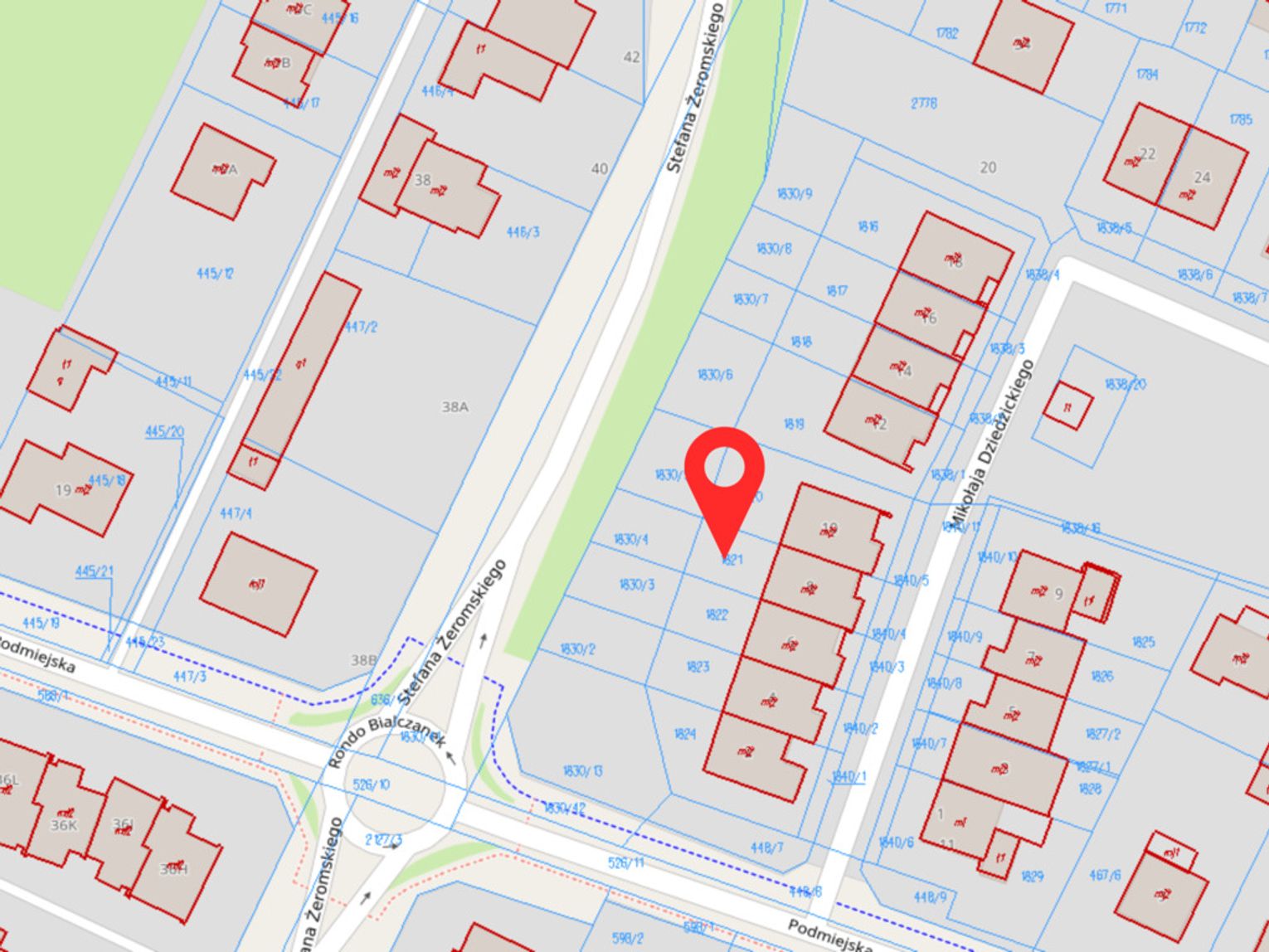 na osiedlu domów jednorodzinnych, z wygodnym dojazdem asfaltową drogą.
