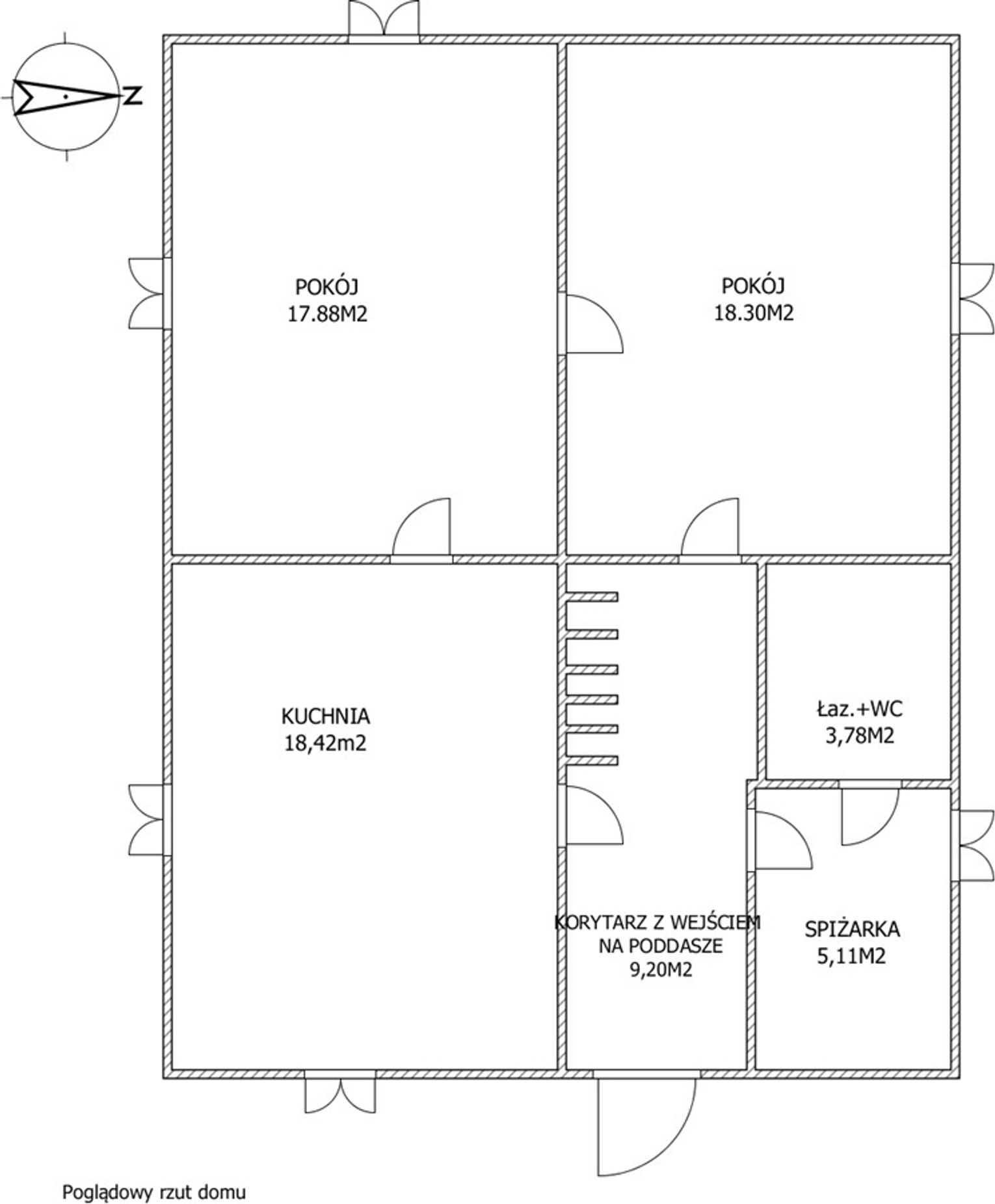 • Dom o powierzchni użytkowej 80m², składający się z: