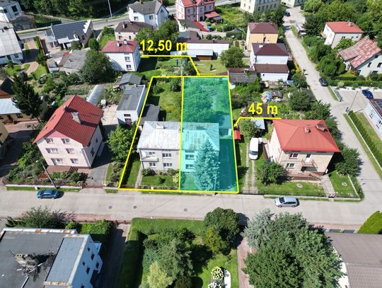 Sprzedawany jest udział w wysokości 1/2 w całej nieruchomości obejmująca dwa niezależne budynki