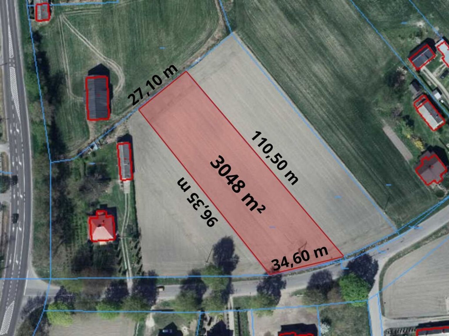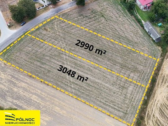 Działka łączy dogodne położenie komunikacyjne z komfortem zamieszkania w cichej, spokojnej okolicy. Możliwość dokupienia drugiej działki obok o powierzchni 2990 m², co da łącznie ponad 6000 m²!