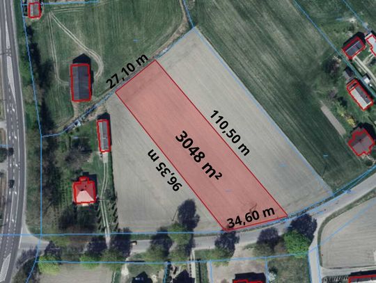 - Działka z przeznaczeniem na budowę jednorodzinną, usługową lub rolniczą.