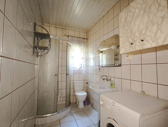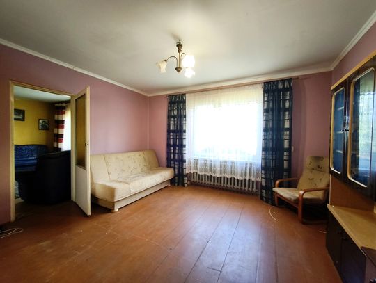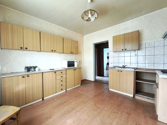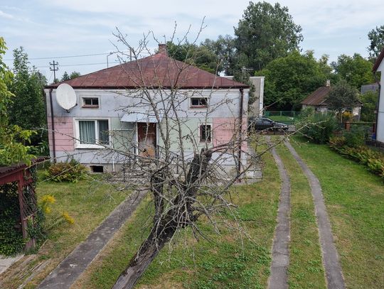 - domem murowanym o powierzchni 111 m² – do remontu,
