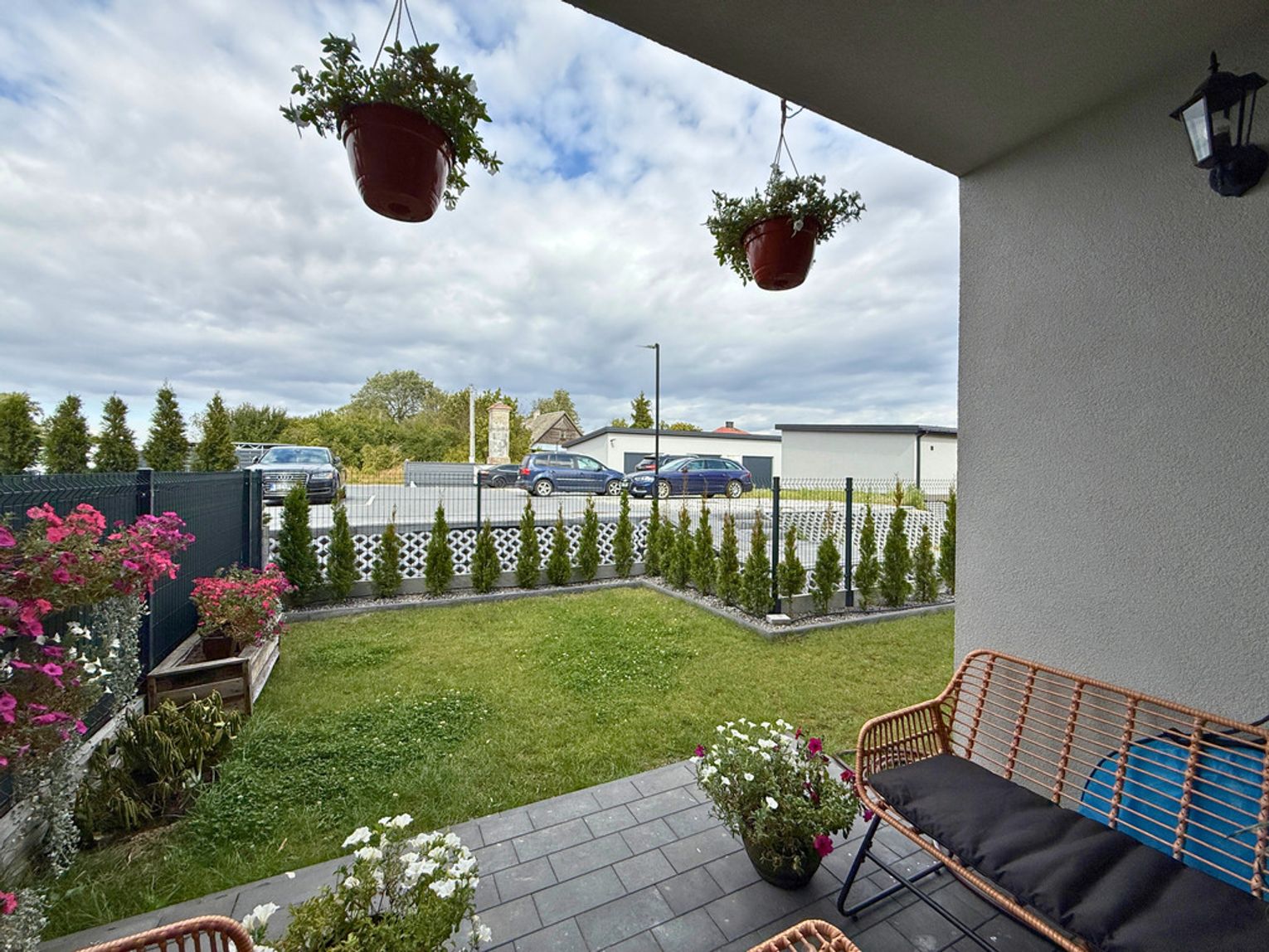 Do dyspozycji właściciela jest także miejsce postojowe oraz wspólne pomieszczenie gospodarcze (dzielone na pół z sąsiadem). Istnieje również możliwość zakupienia garażu.