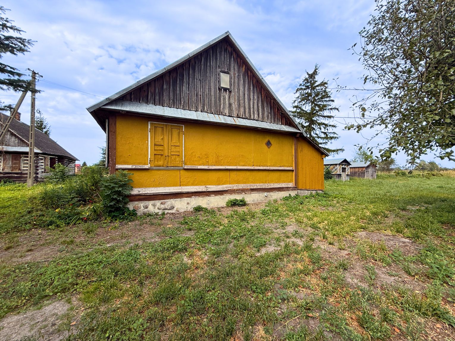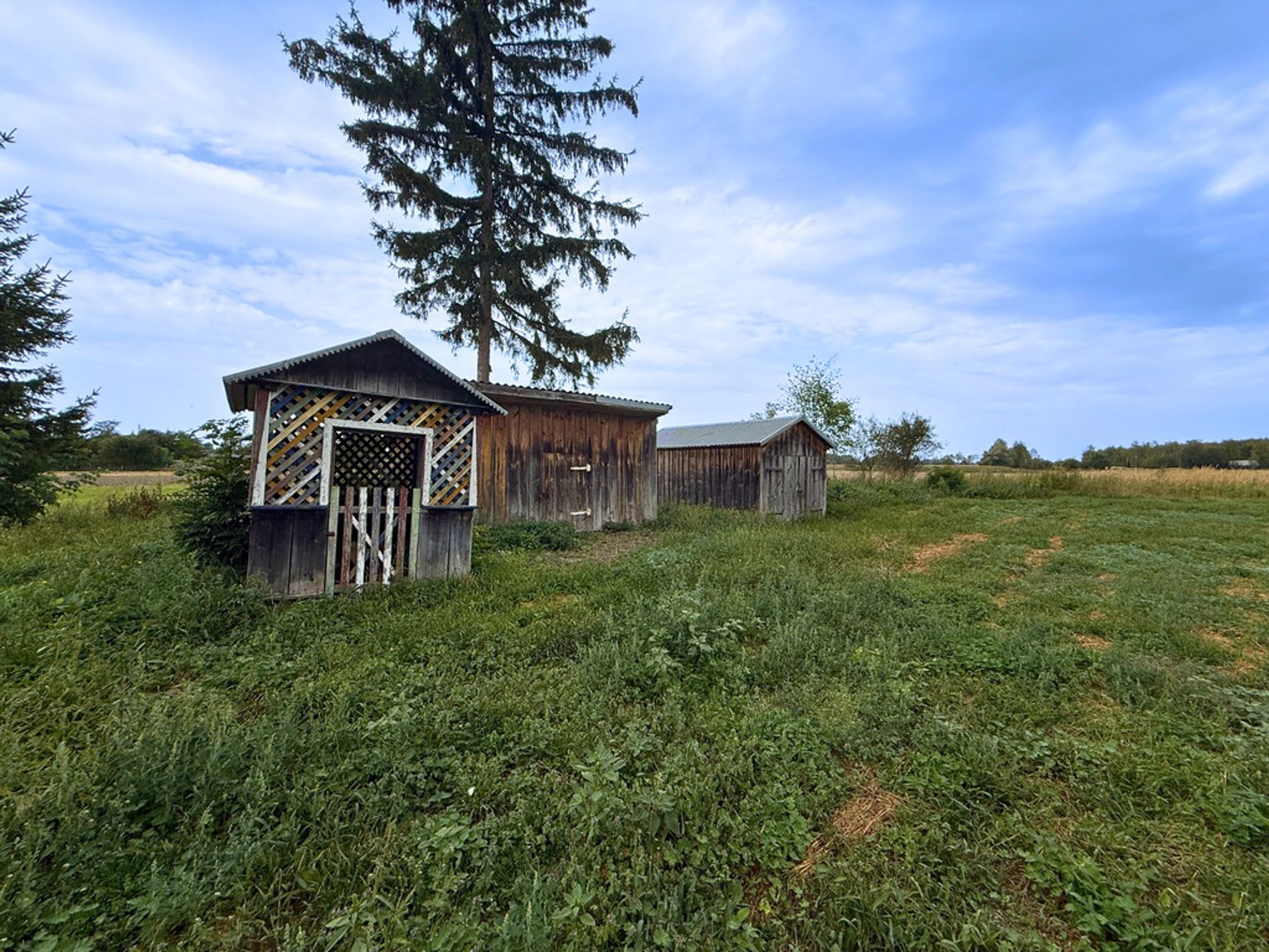 - dwa drewniane budynki gospodarcze – przydatne do przechowywania sprzętu czy drewna.