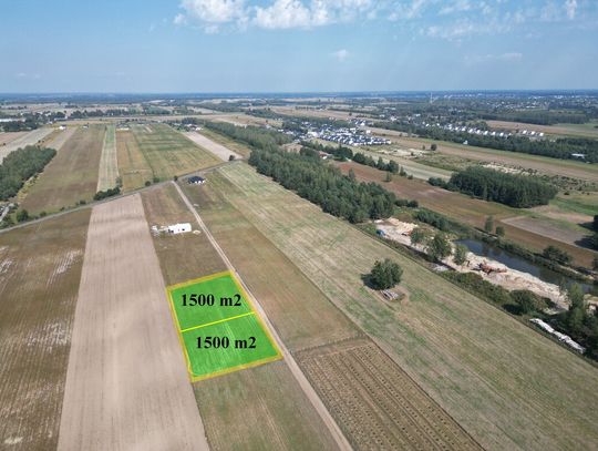 Każda z działek ma powierzchnię 1500 m² i posiada wydane warunki zabudowy.