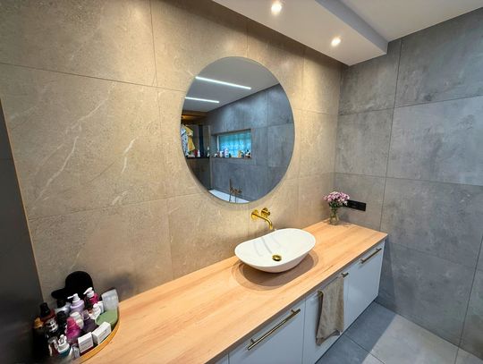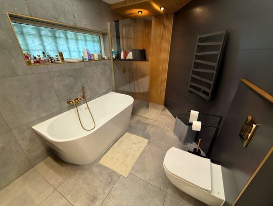 - Łazienka z wanną, prysznicem i zsypem do pralni w piwnicy