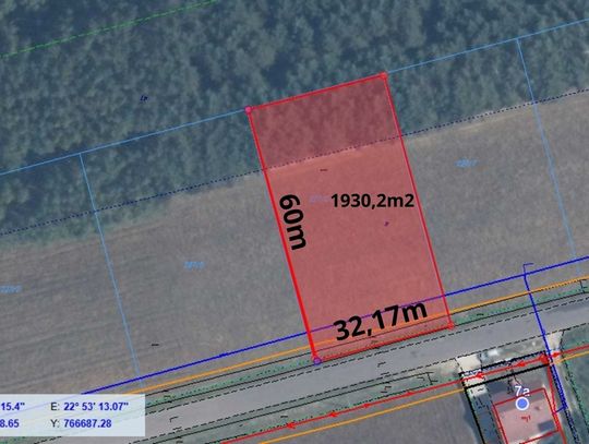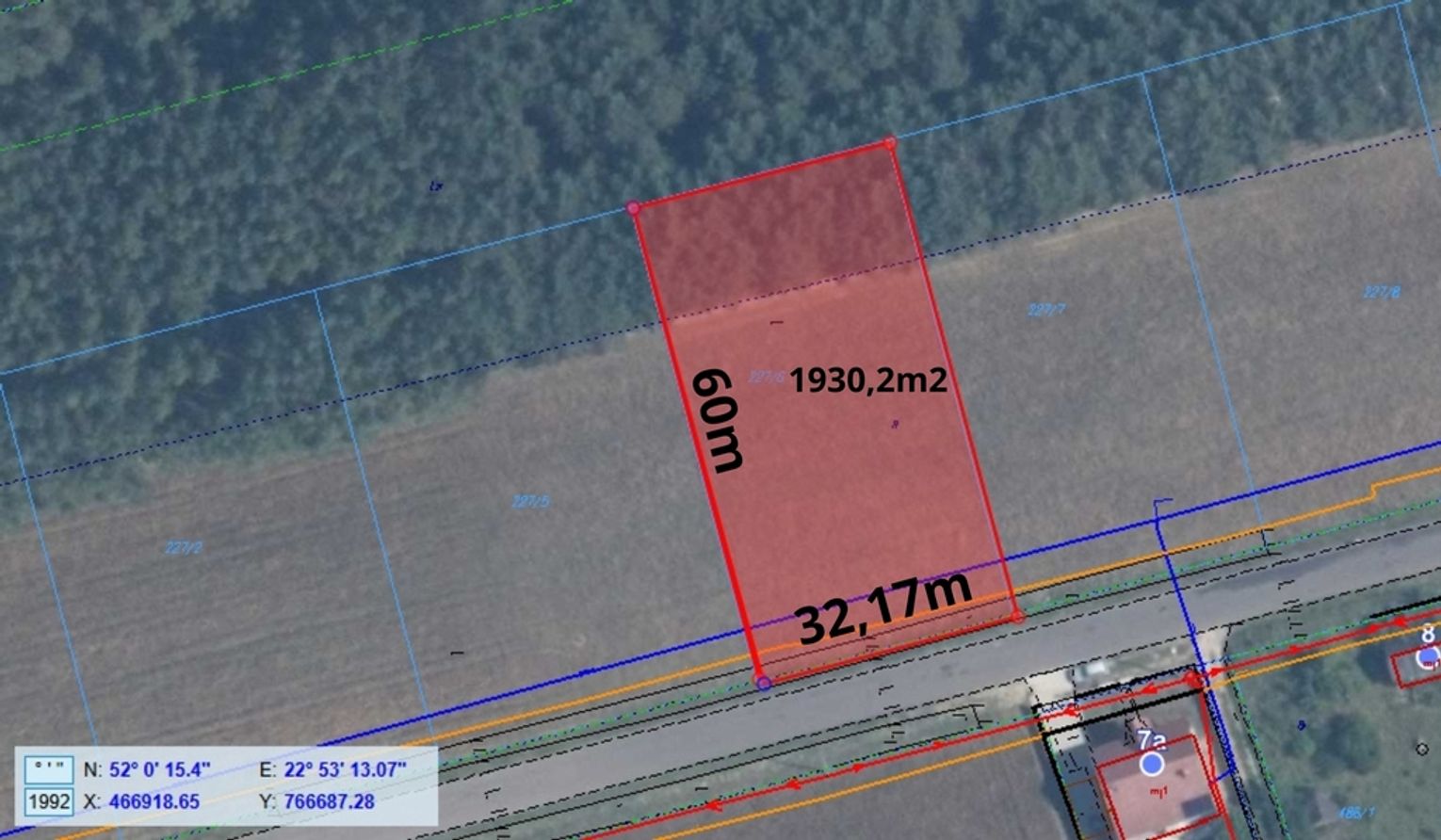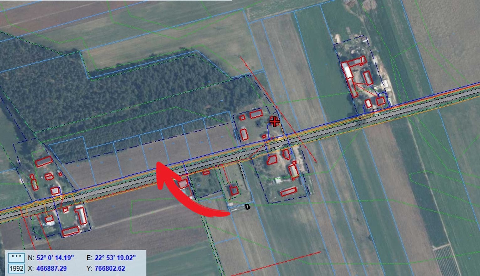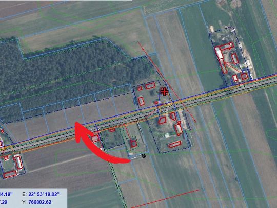 Działka z numerem 19-227/6 położona niedaleko głównej trasy prowadzącej do Białej Podlaskiej / Lublina / Warszawy.