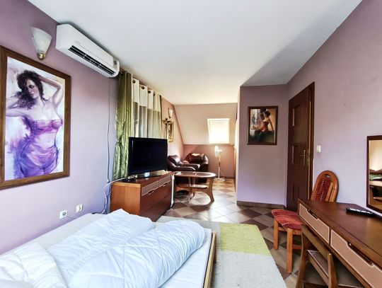 Ogrzewanie kominkowe oraz klimatyzacja w wybranych pomieszczeniach zapewniają komfort przez cały rok.