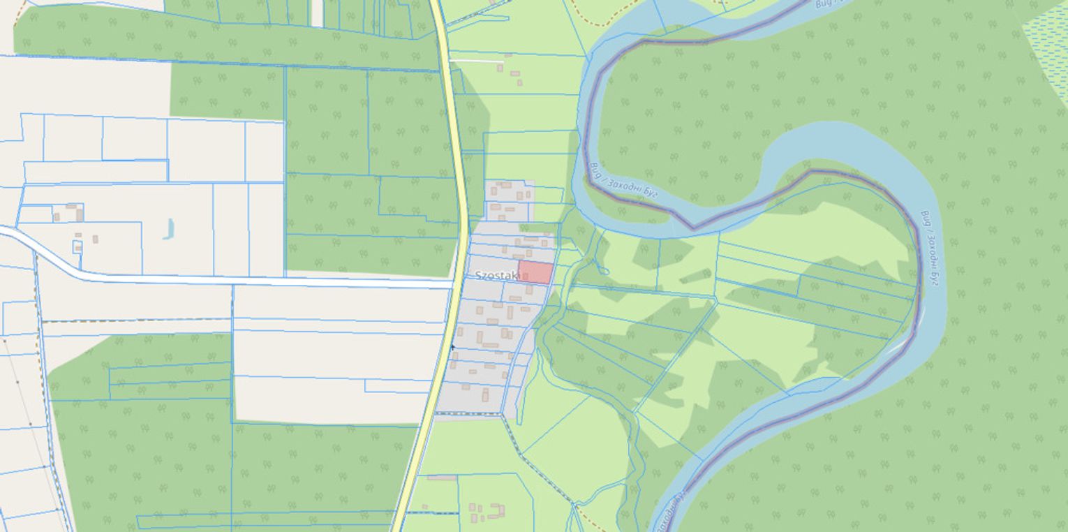 położony na działce o powierzchni 2634 m² w miejscowości Szostaki, gmina Kodeń, powiat bialski.