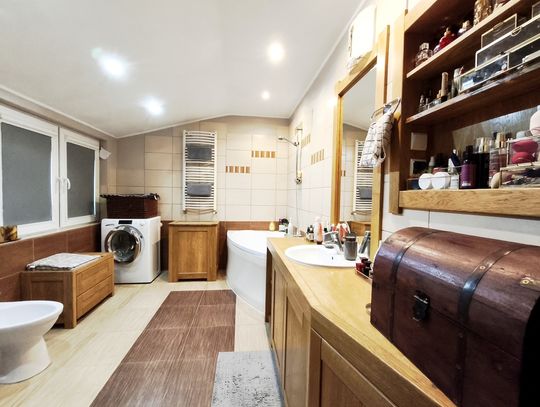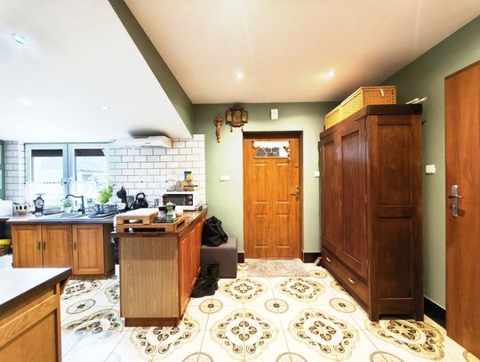 Ogrzewanie kominkowe, rozprowadzone na grzejniki plus ogrzewanie podłogowe w części kuchennej oraz łazience.