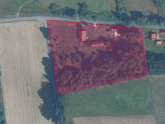 zabudowaną domem całorocznym, drewnianym domkiem letniskowym, dwoma budynkami gospodarczymi oraz ziemianką.