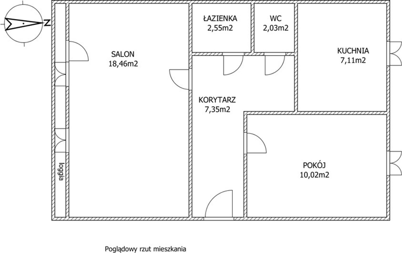 - duży, słoneczny salon z wyjściem na loggię – z potencjałem do wydzielenia dodatkowego pokoju lub biura,