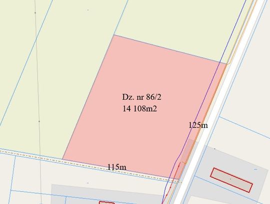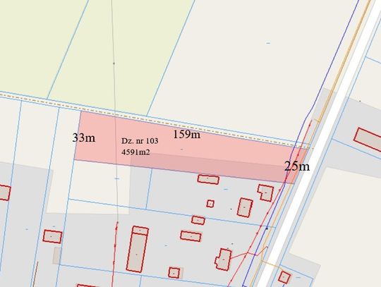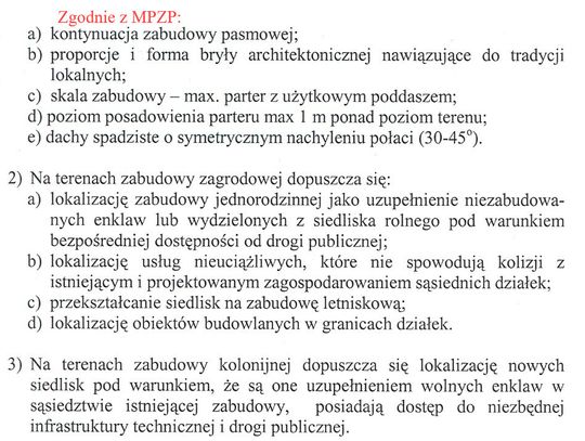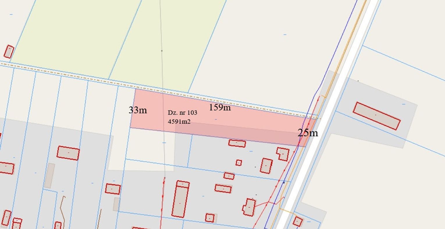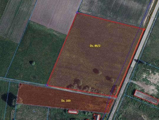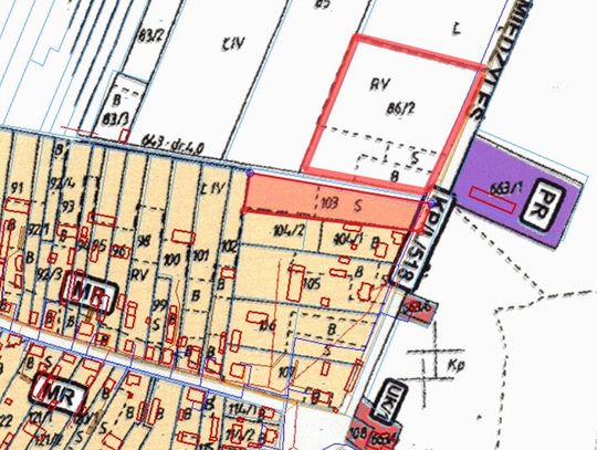 * Obowiązujący MPZP (dla działki 103) – możliwość zabudowy zagrodowej, a po sąsiedzku działka rolna 86/2