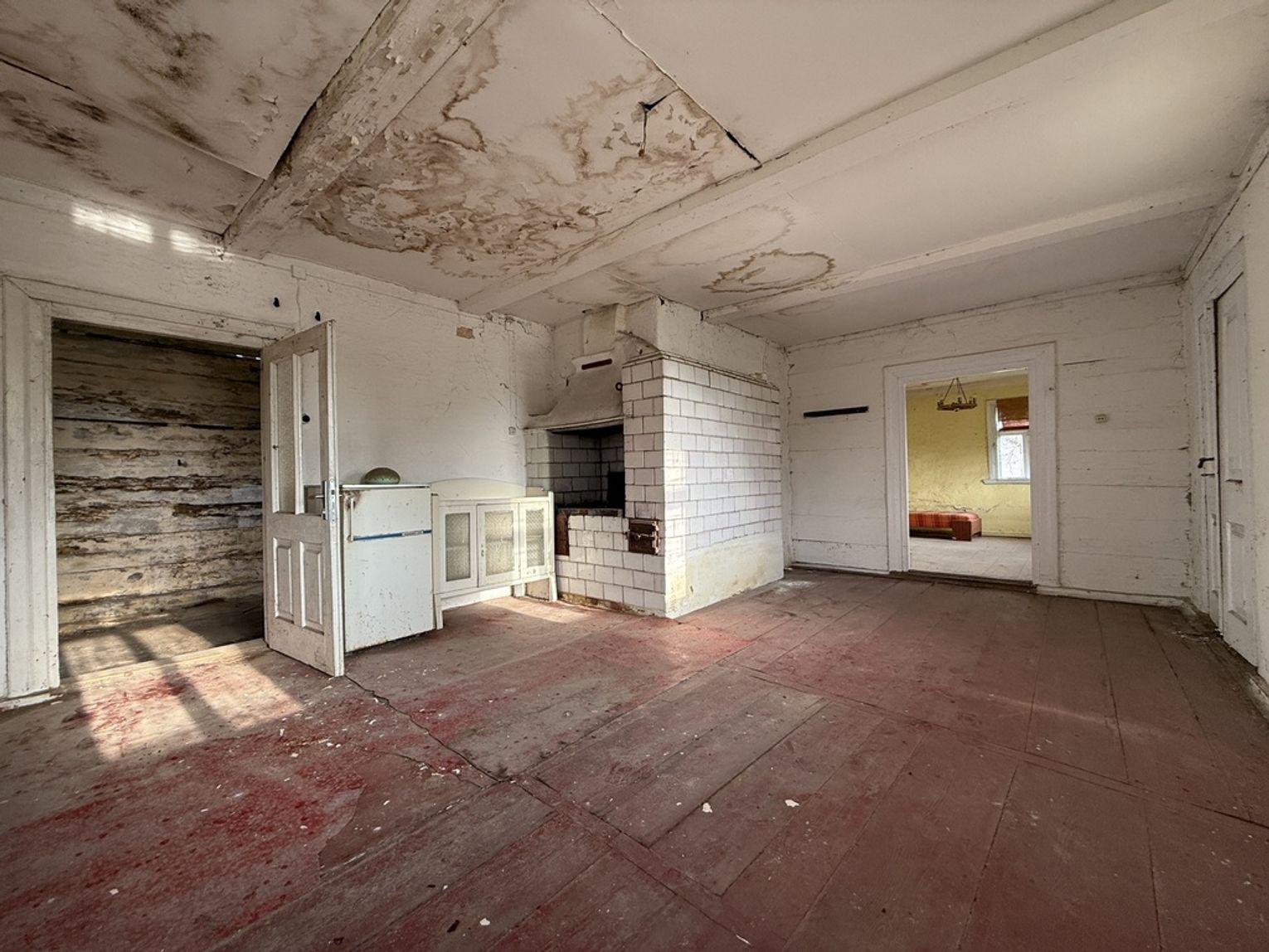 To nie jest ogłoszenie o ładnym domu. To jest ogłoszenie o taniej bazie, gruncie i realnym potencjale. Na działce znajduje się stary, drewniany 82 metrowy budynek mieszkalny – wymagający generalnego remontu albo rozbiórki. I właśnie dlatego ta oferta ma sens. Dom już stoi, co oznacza łatwiejszy start formalny, możliwość adaptacji istniejącej zabudowy lub wykorzystania jej jako punktu wyjścia pod nową inwestycję.