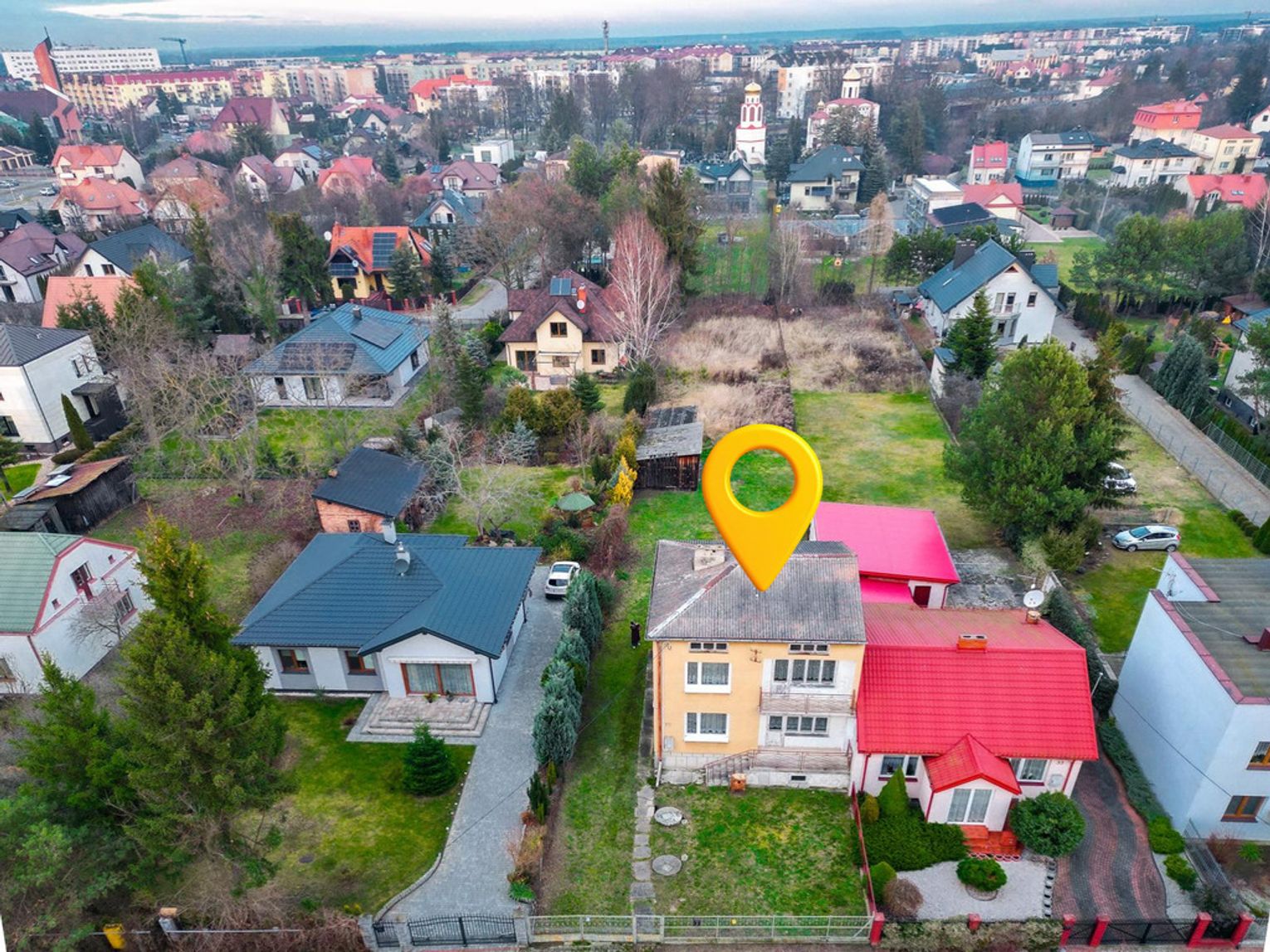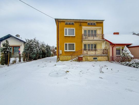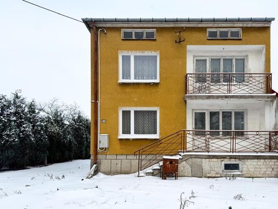 Solidny dom z lat 70., wybudowany z pustaka, na działce o wymiarach 109 m długości — co daje ogrom możliwości adaptacyjnych i zagospodarowania przestrzeni.