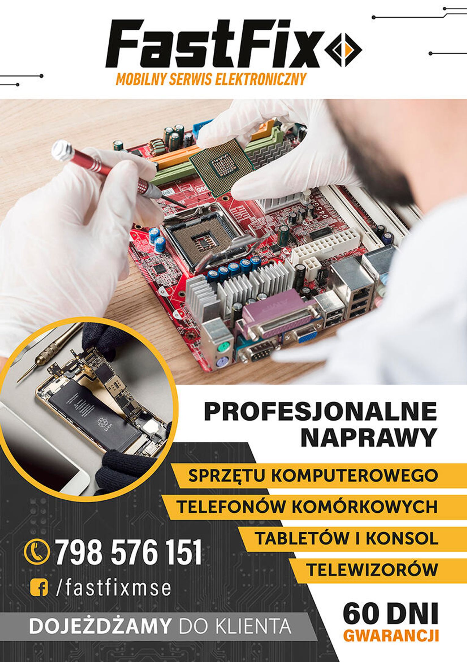 Naprawy elektroniczne telefonów, laptopów, telewizorów, również z dojazdem do Klienta.